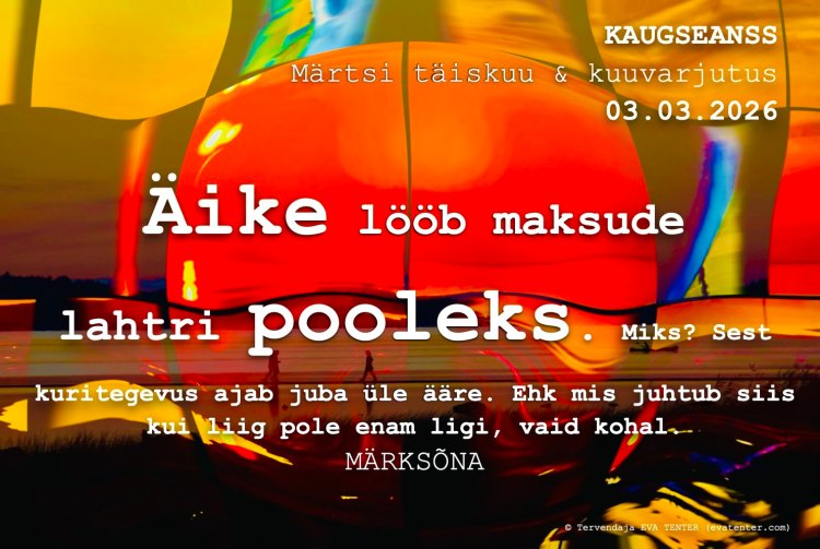 - Oktoobri noorkuu 2021 avalik kaugseanss (https://evatenter.com/2021/10/06/oktoobri-noorkuu-2021-avalik-kaugseanss/) Märksõna – Eesriie rebeneb tükkideks