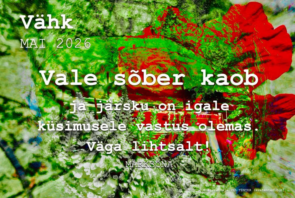 - Kui olete minu kodulehel uus lugeja, siis soovitan teil alustada näiteks 2026 a. sõbrapäeva erisõnumist, mille leiate siit – https://evatenter.com/2026/02/11/sobrapaeva-erisonum-2026/