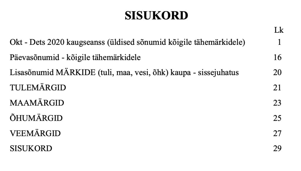 Kui pikk on iga märgi sõnum siin horoskoobis? Selle näete ära sisukorrast, mille lisan siia alljärgnevalt: