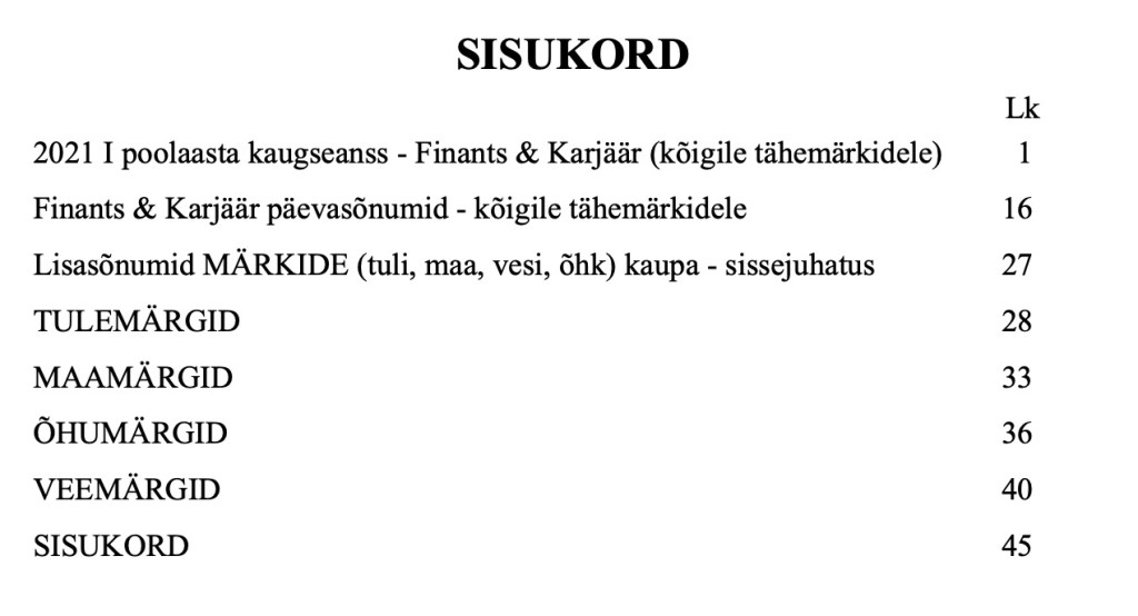 Jätkame sisulise infoga 2021 a. esimese poolaasta finants & karjääri sõnumite kohta.
