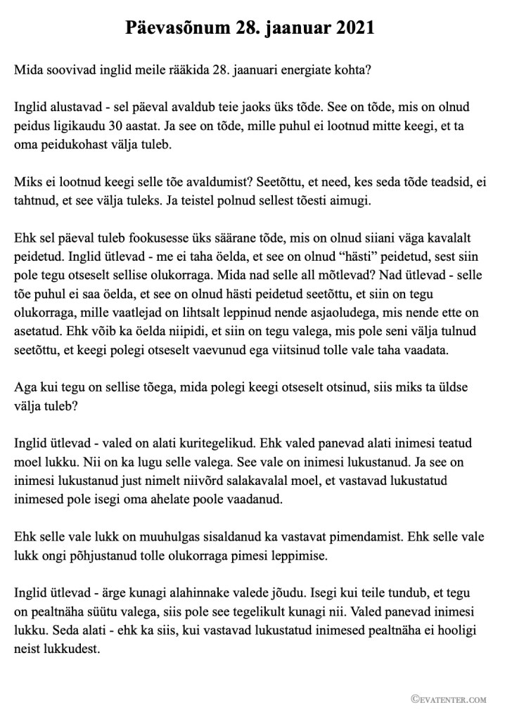Ehk 28. jaanuari päevasõnumi toon ma siin avalikult välja (tasuta eelvaate ühe osana).