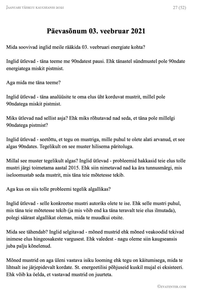 Jätkame sisulise infoga 2021 a. jaanuari täiskuu kaugseansi sõnumite kohta.