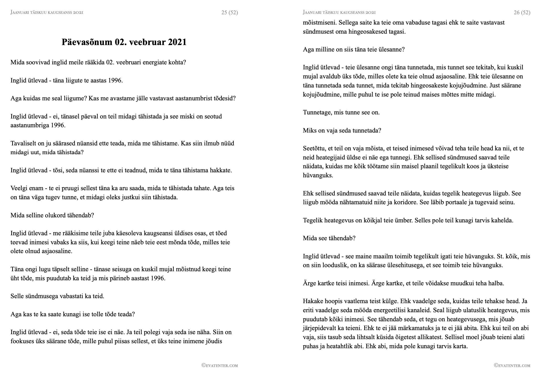 Jätkame sisulise infoga 2021 a. jaanuari täiskuu kaugseansi sõnumite kohta.