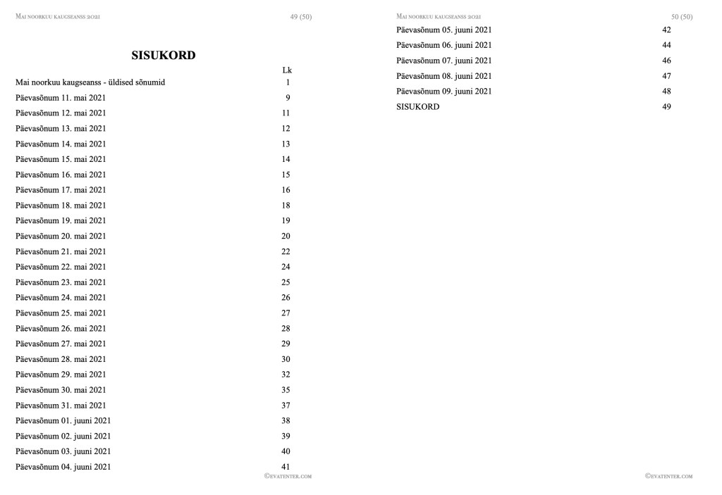 Milline on mai noorkuu sõnumite ülesehitus täpsemalt? Selle näete ära sisukorrast, mille lisan siia alljärgnevalt: