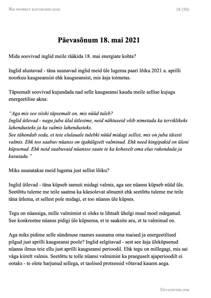 18. mai 2021 päevasõnum on mai noorkuu kaugseansis järgmine: