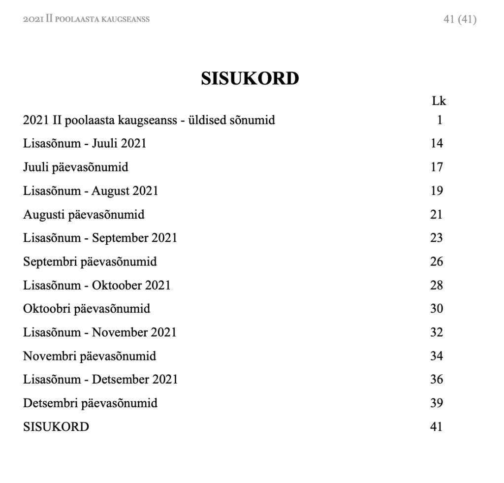 Kaugseanss – 2021 a. II poolaasta (juuli – detsember)
