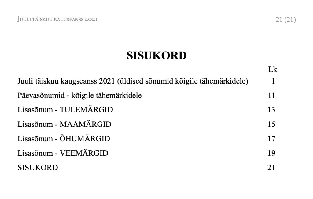 Kui pikk on iga märgi sõnum siin horoskoobis? Selle näete ära sisukorrast, mille lisan siia alljärgnevalt: