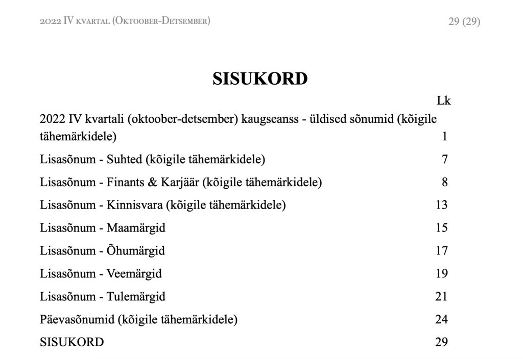 Käesolevad sõnumid on 2022 a. neljanda kvartali sõnumid.