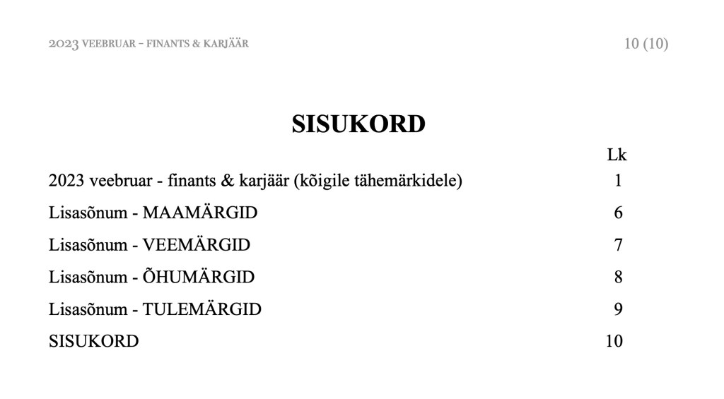 Käesolevad sõnumid on 2023 a. veebruari finants & karjäär kaugseansi sõnumid.