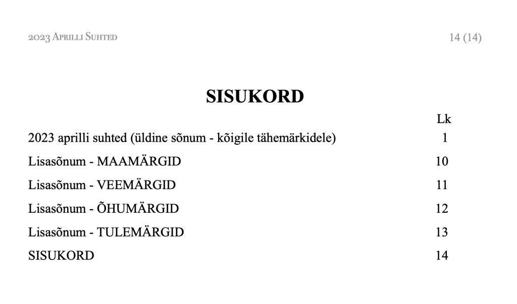 Käesolevad sõnumid on 2023 a. aprilli suhete kaugseansi sõnumid.