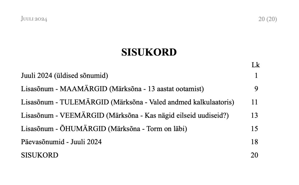 Sõnumite mahuks on seekord 20 lk.
