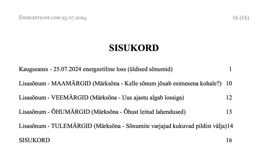 Selle horoskoobi sisu täpse ülesehituse näete ära ka sisukorrast ja nüüd on ka lisasõnumite märksõnad näha otse sisukorrast: