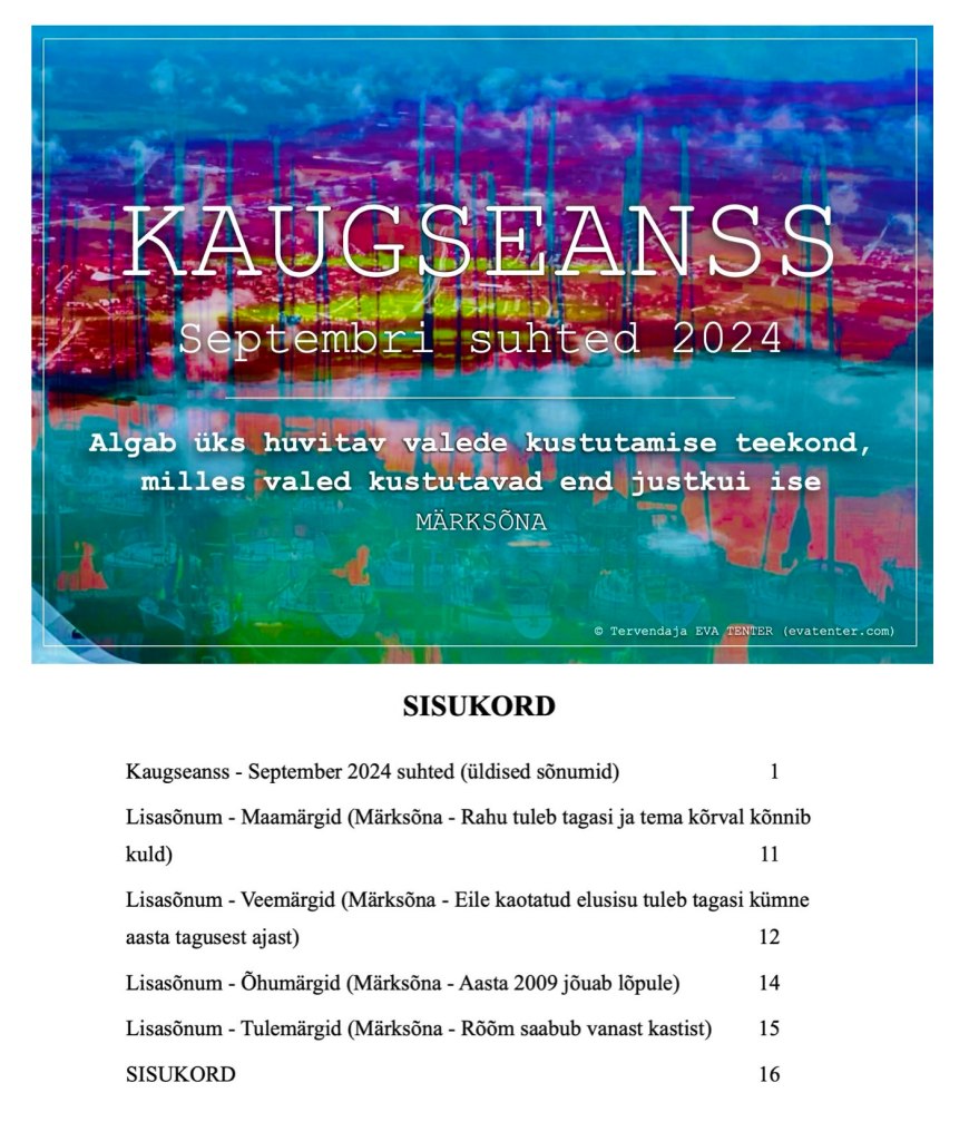 Mis selles kaugseansis täpsemalt sisaldub? Kuidas sellega liituda? Kogu lisainfo leiate siit – https://evatenter.com/2024/09/04/kaugseanss-september-2024-suhted/
