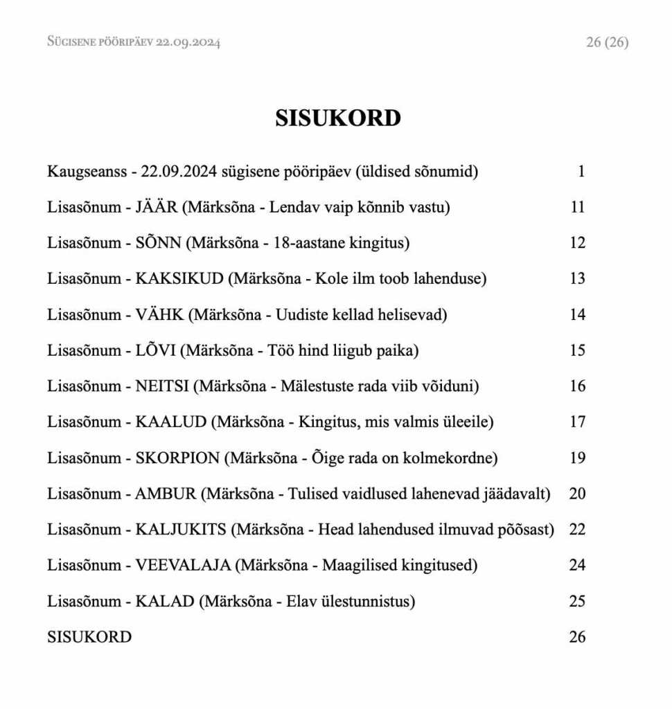 (Antud hind sisaldab seega e-raamatu ehk pdf faili kujul 22.09.2024 sügisese pööripäeva horoskoopi. Fail/ horoskoop on kokku 26 lk.)