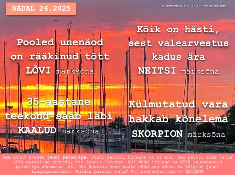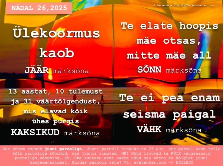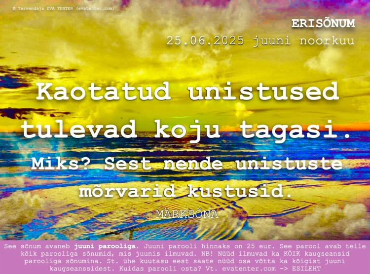 Hetkesõnum 28. juuni 2025 MÄRKSÕNA – Lend, mis algab minevikust Millest soovivad inglid rääkida siin hetkesõnumis? Inglid ütlevad – täna suuname me teid üle lugema nädala nr 47 sõnumit, aastast 2021. Selle sõnumi leiate siit – https://evatenter.com/2021/11/17/nadala-inglisonum-22-11-28-11-2021/ Aga miks suuname teid täna just selle sõnumi juurde? Inglid ütlevad – sest täna avaneb uus maailm. Ja see […]