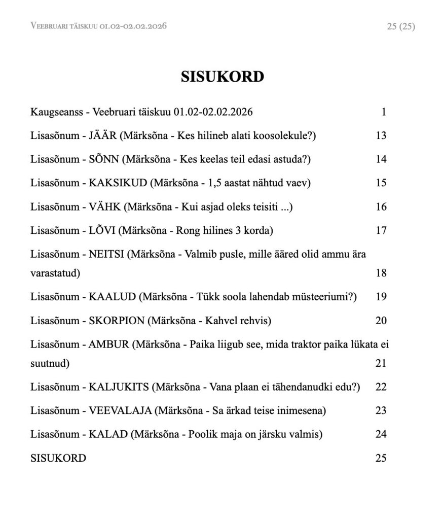 Käesolev sõnum on müügis kuni 08. veebruarini 2026.