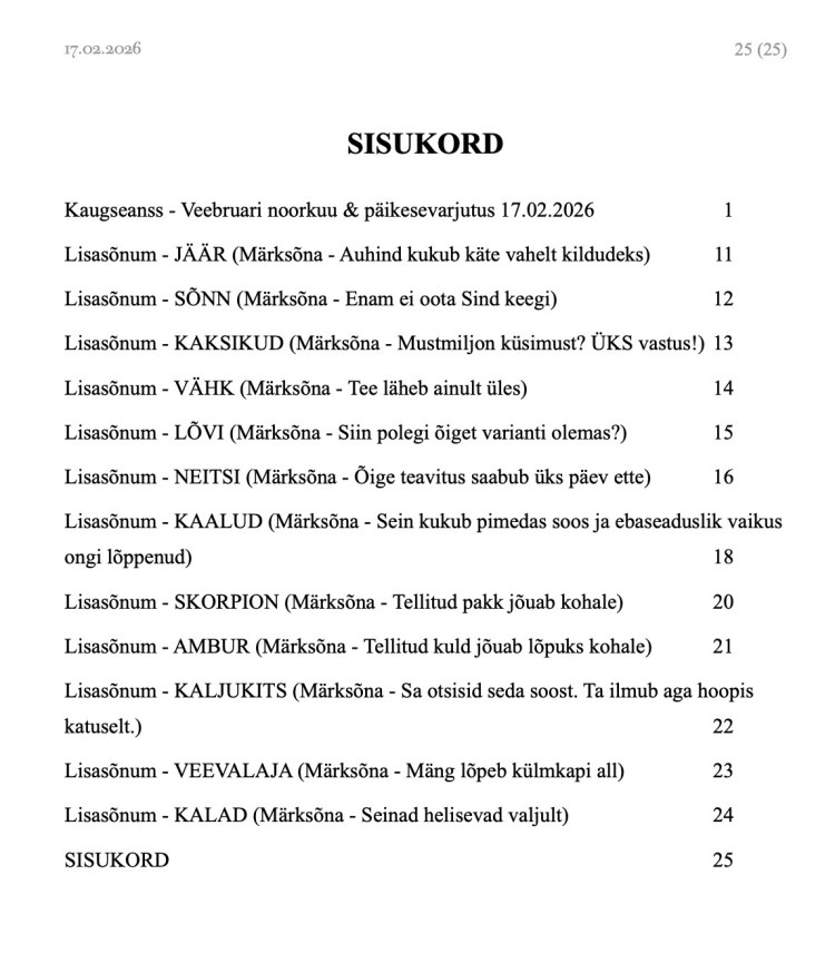 Täpsemalt on veebruari noorkuu ja päikesevarjutuse sõnum pikkusega 25 lk (koos tähemärkide lisasõnumitega).