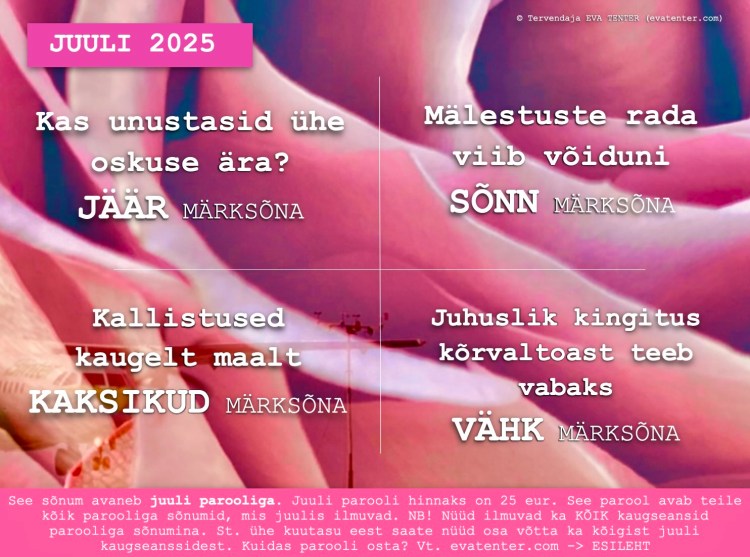Loe veelUUDIS NB! Senine paroolisüsteem saab läbi juulikuuga. Ehk parooliga sõnumite süsteem, mis kehtis alates 2025 a. jaanuarist saab selle kuuga läbi. Ja see tähendab muuhulgas seda, et kõigi varasemate kuude paroolide müük lõpeb samuti juulikuuga. Ehk kui teil jäi vahelt mõni kuuparool ostmata, kuid teate juba täna, et soovite selle millalgi siiski osta, siis nüüd […]
